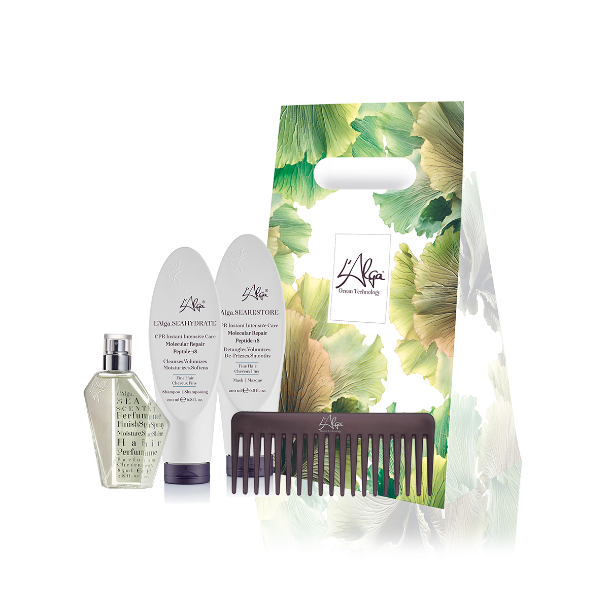 L’Alga CPR-18 eksklusiivne kinkekomplekt on loodud neile, kes ei lepi grammigi vähemaga kui tippklassi hooldus. See kõrgtehnoloogiline sari taastab juustele tekitatud kahjustused, tuues tagasi nende loomuliku elujõu, siidise sileduse ja kauni läike. Komplektis on kaks luksuslikku CPR Intensive Care Peptide-18 sarja toodet – taastav šampoon ja intensiivne juuksemask, mida täiendab laiade piidega kamm juuste õrnaks kammimiseks. Komplekti krooniks on eksklusiivne L’Alga juukseparfüüm, mille värske rabarberi, bergamoti ja lootoselille rannalik aroom jääb juustesse õrnalt püsima, andes igale hooldusele luksusliku lõppakordi. See pole lihtsalt parfüüm – see on luksuslik viimistlustoode, pakkudes niisutust, sära ja pehmust.