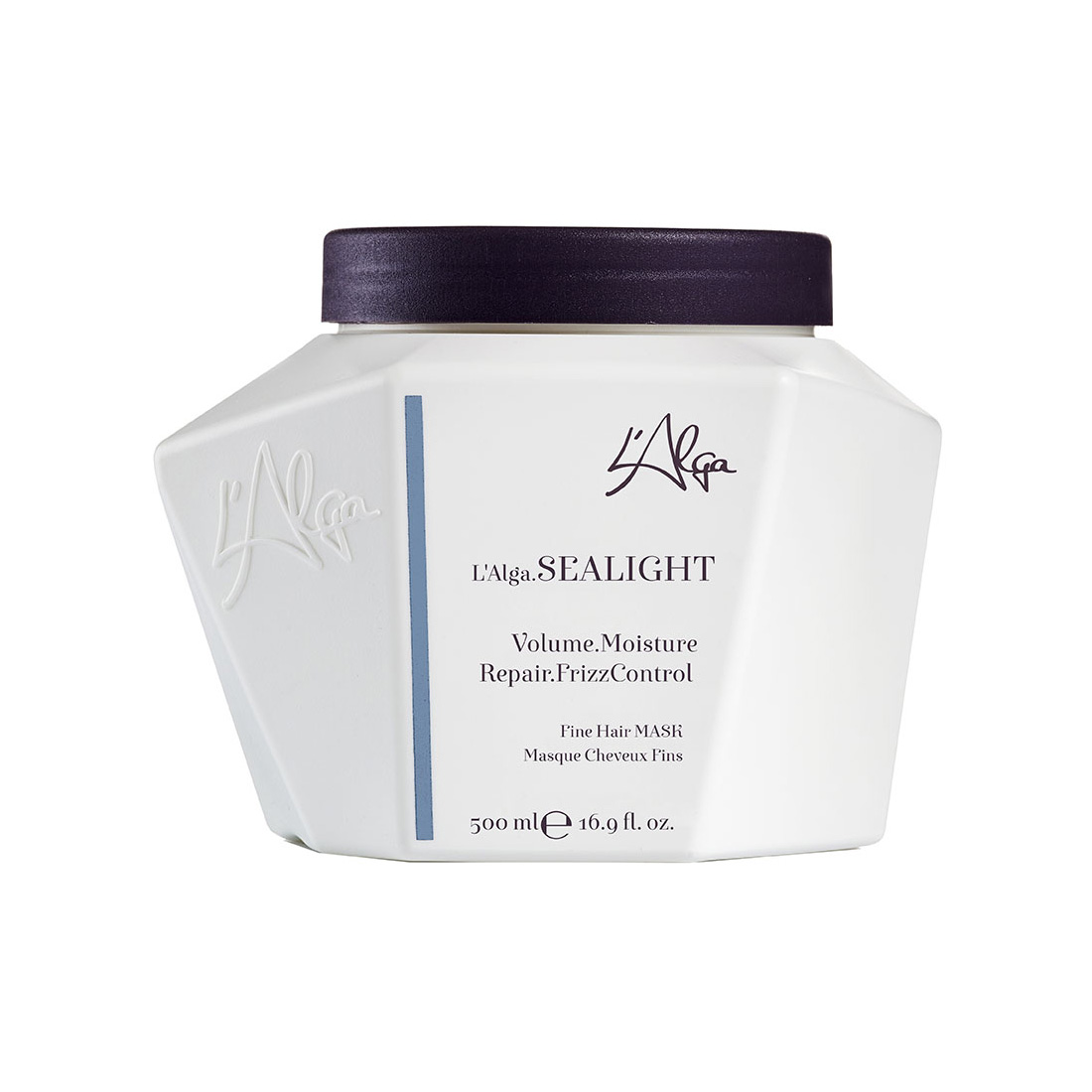 L’Alga.SEALIGHT juuksemask taastab õhukeste ja peente juuste niiskustaseme, pehmuse ja sära, parandades samal ajal juuste keratiinkihti. AlgaNord 5™ vetikakompleks koos biotiini, niatsiinamiidi ja riitsinusõliga toidab sügavuti, silub kutiikuleid ja stimuleerib peanaha mikrovereringet. Kerge koostis annab kauapüsiva volüümi, elavdab väsinud juukseid ja kontrollib kahusust. Juuksed tunduvad täidlasemad, säravamad ja jäävad meeldivalt kergeks.